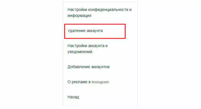 Удаление Instagram при помощи прямой ссылки